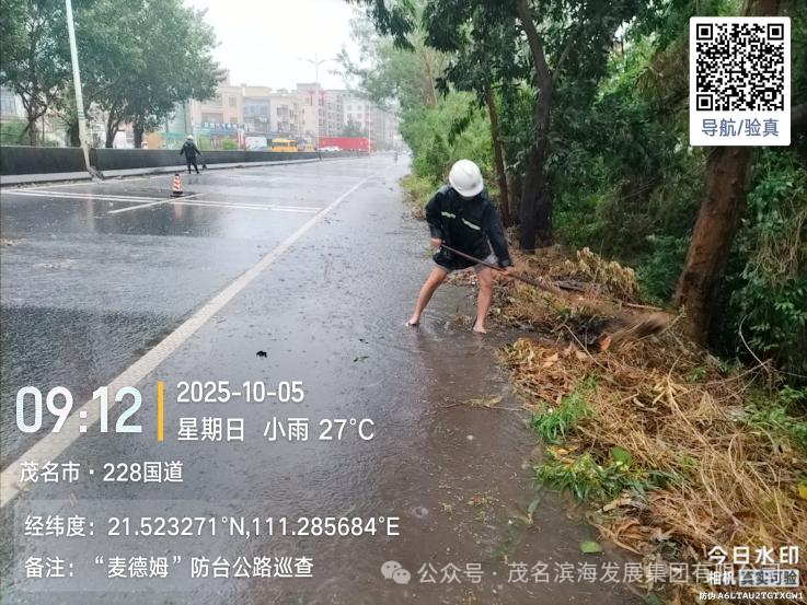 與此同時(shí),養(yǎng)護(hù)中心搶險(xiǎn)隊(duì)優(yōu)化力量配置,采取“兵分兩路”工作模式,對茂名港大道、S291省道、轄區(qū)國道及X848縣道等展開全域巡查,及時(shí)發(fā)現(xiàn)并疏通積水點(diǎn),協(xié)同清理國道沿線倒伏樹木,快速消除多處道路安全隱患,保障了道路基礎(chǔ)通行條件。